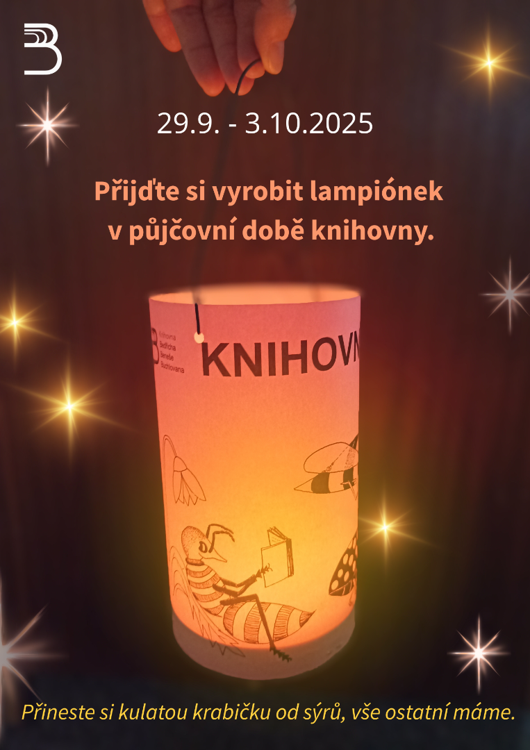 Přijďte si vyrobit lampiónky v týdnu 29.9.‑3.10. a připojte se k lampiónovému Setkání broučků 3.10. v 18:00 hod na Masarykově náměství.
