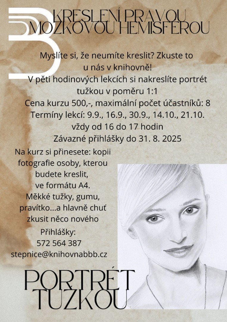Pokračuje také kurz kreslení pravou mozkovou hemisférou. Kurz je již naplněn.