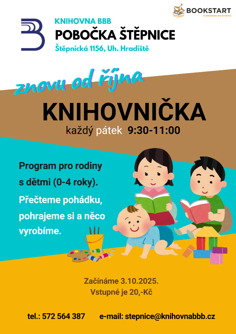 Od pátku 3.10. začíná opět pravidelný program pro rodiče s nejmenšími Knihovnička. Každý pátek 9:30‑11:00 hod.